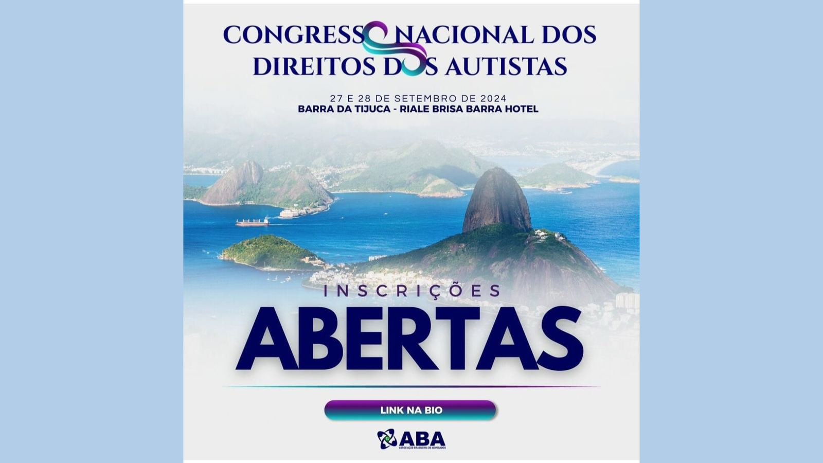 A Associação Brasileira de Advogados tem o prazer de convidá-lo para o II Congresso Nacional de Direitos dos Autistas. Nos dias 27 e 28 de setembro de 2024, no Hotel Rialle Brisa, Barra da Tijuca, no Rio de Janeiro. Junte-se aos principais especialistas e nomes da área. Organizado pela Comissão Nacional de Direito dos Autistas … Ler mais