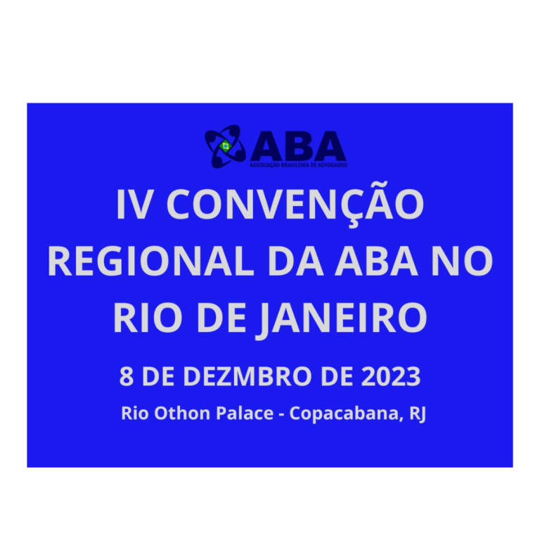 É com grande entusiasmo e honra que a Associação Brasileira de Advogados convida todos os seus associados e membros da comunidade jurídica para a IV Convenção Regional no Rio de Janeiro, a ser realizada no dia 8 de dezembro de 2023, no Rio Othon Palace, em Copacabana.